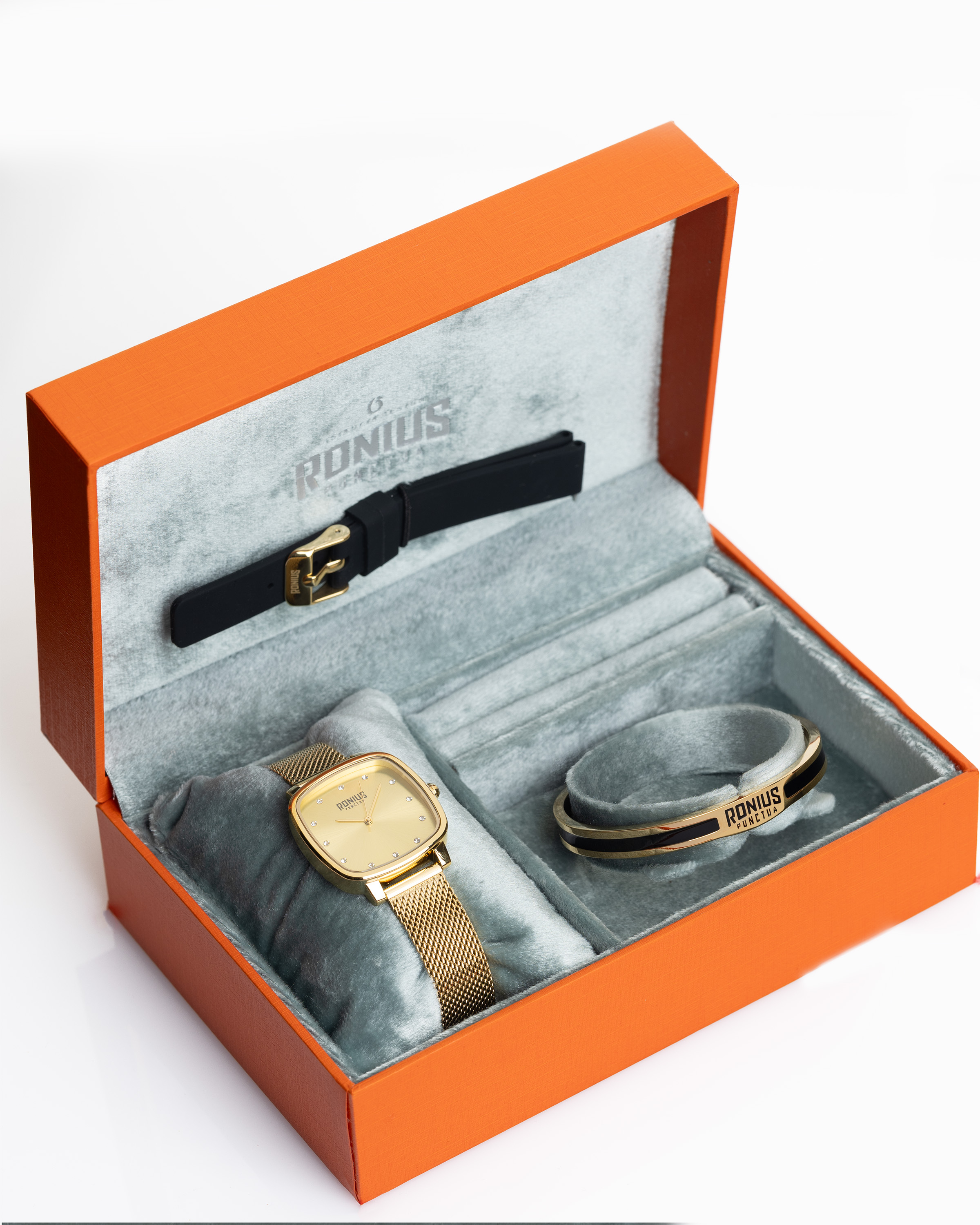 The FROST Set is designed for those who appreciate refined, versatile style. Each box includes the FROST watch with crystal-enhanced dial, an additional matching silicone strap, and the coordinated enamelled steel bracelet.