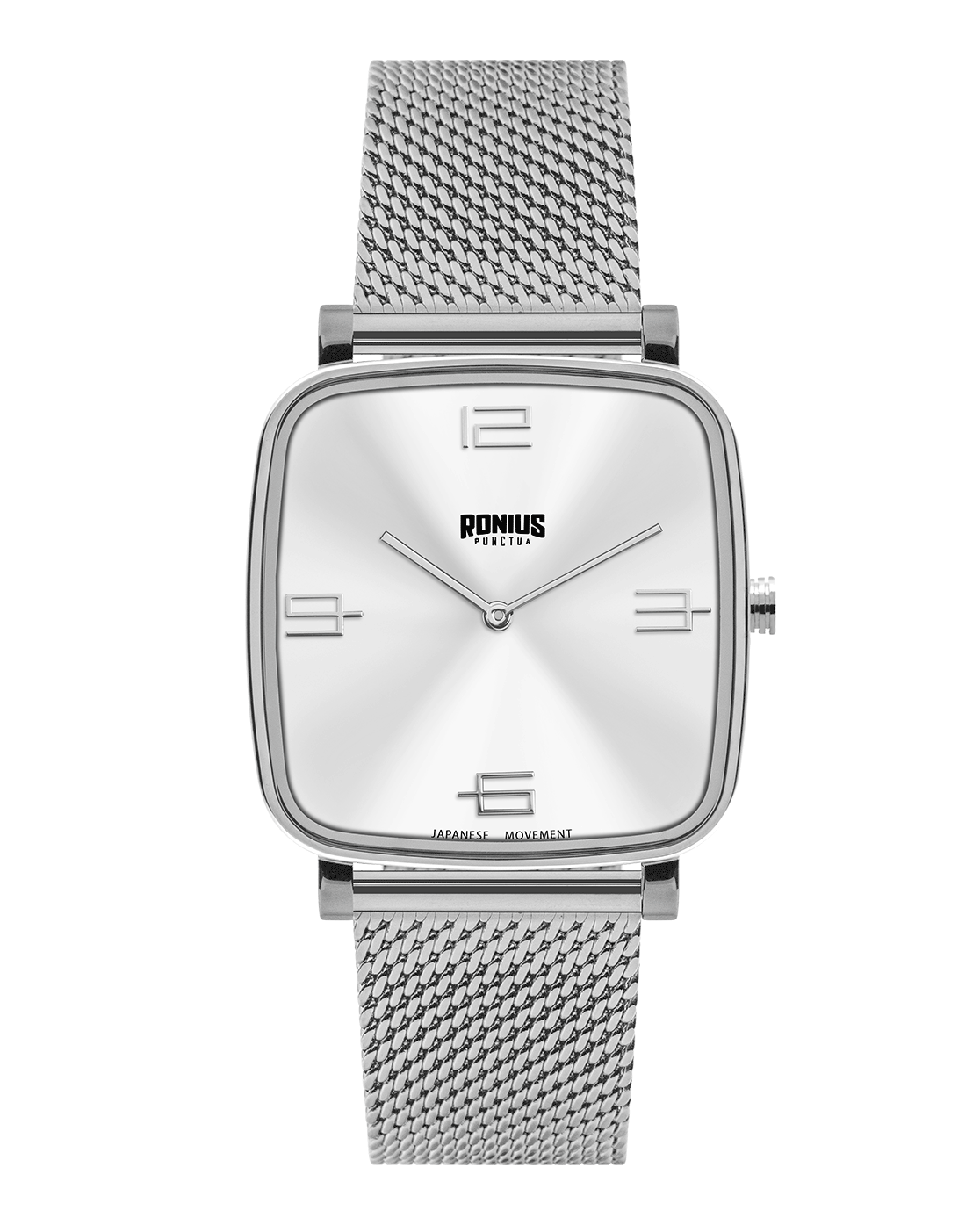 Pure minimal elegance: the silver dial with modern numeric markers pairs with the stainless-steel bracelet for a clean, bright and timeless aesthetic.
