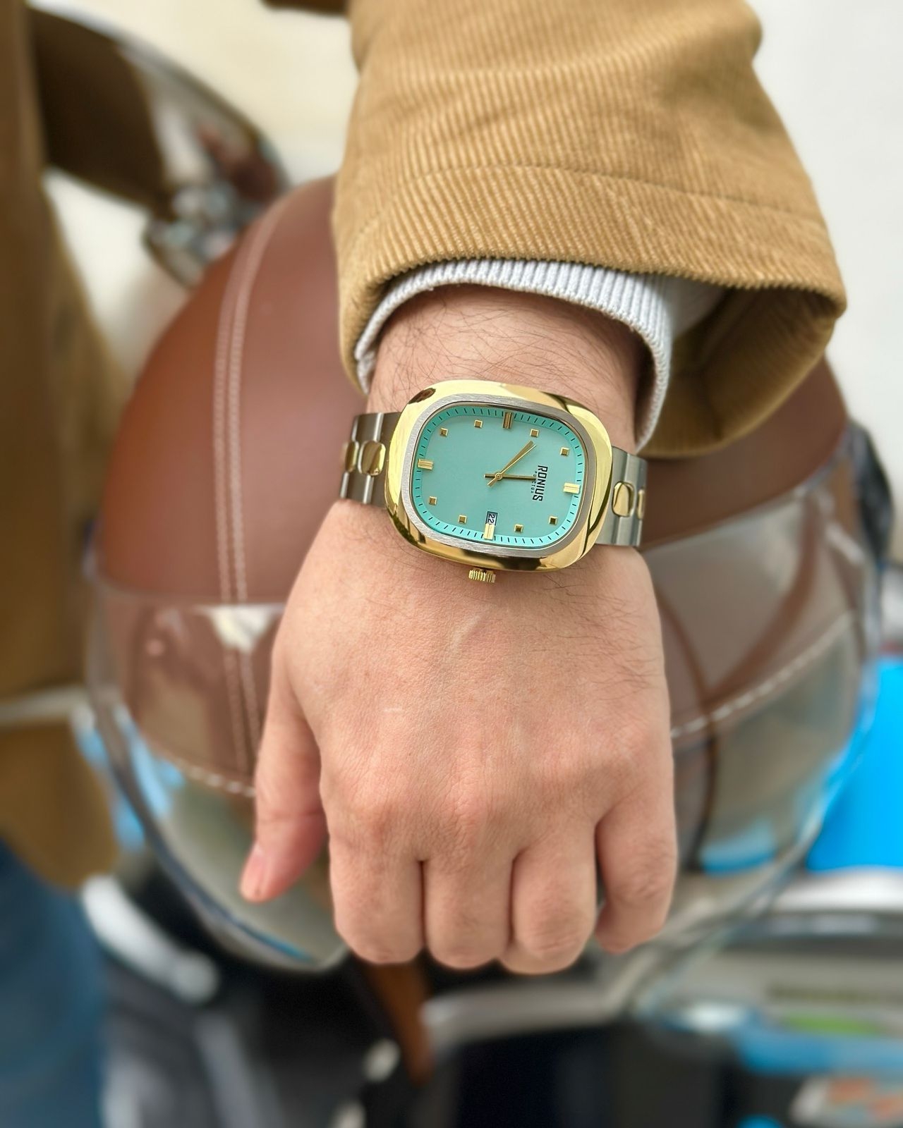 A fresh and refined men's timepiece. The mint dial, bright and modern, pairs beautifully with the gold case and two-tone bracelet, creating an elegant yet contemporary look. In the 40 mm version, this model has a strong wrist presence while maintaining the lightness and versatility that define the Elegance collection.