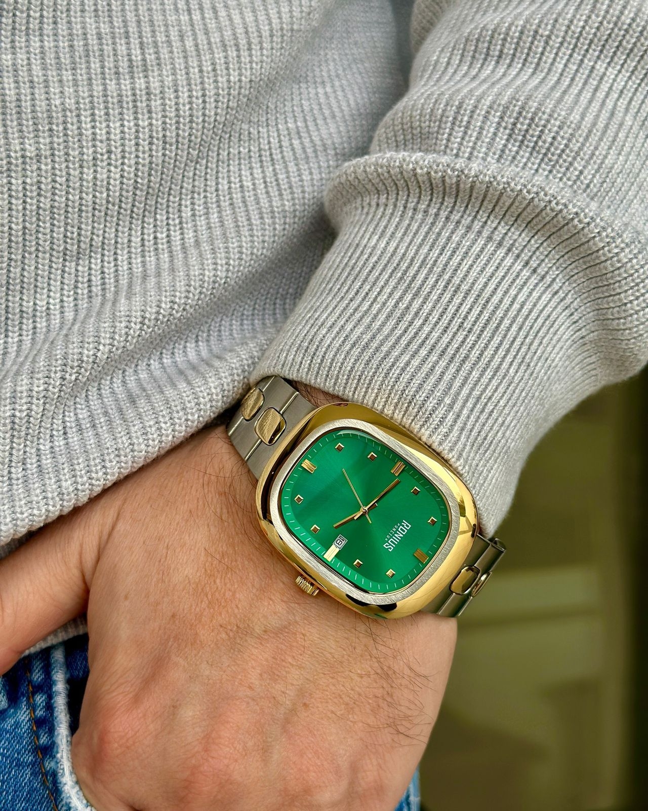 A bold and refined timepiece, now also available in the 40 mm men's version. The deep green dial adds richness and style, while the gold case and two-tone bracelet create a modern, sophisticated look. A perfect choice for those who want to stand out with elegance and a strong wrist presence.